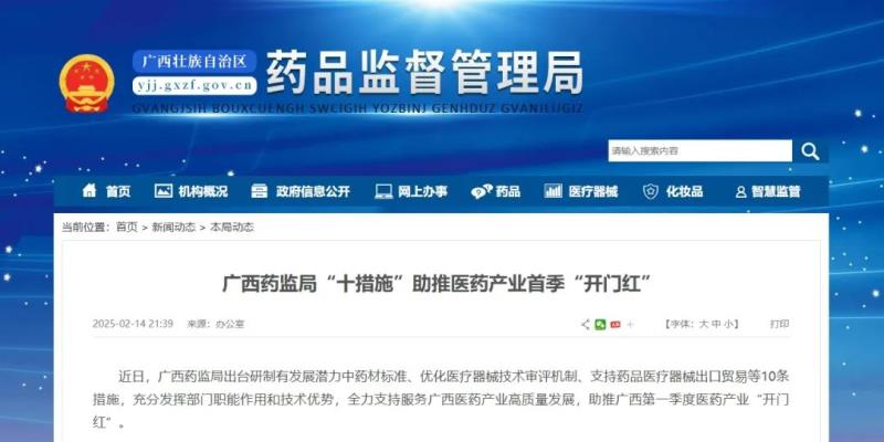 近日,廣西藥監(jiān)局出臺研制有發(fā)展?jié)摿χ兴幉臉?biāo)準(zhǔn)、優(yōu)化醫(yī)療器械技術(shù)審評機(jī)制、支持藥品醫(yī)療器械出口貿(mào)易等10條措施,充分發(fā)揮部門職能作用和技術(shù)優(yōu)勢,全力支持服務(wù)廣西醫(yī)藥產(chǎn)業(yè)高質(zhì)量發(fā)展,助推廣西第一季度醫(yī)藥產(chǎn)業(yè)“開門紅”。具體如下:
