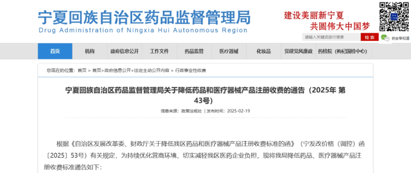 2月19日,寧夏回族自治區(qū)藥監(jiān)局發(fā)布《關(guān)于降低藥品和醫(yī)療器械產(chǎn)品注冊(cè)收費(fèi)的通告(2025年 第43號(hào))》,大幅降低藥品和醫(yī)療器械產(chǎn)品注冊(cè)收費(fèi)標(biāo)準(zhǔn)。具體內(nèi)容如下: