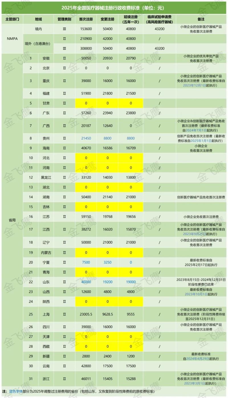最后依然是按咱們的老規(guī)矩,我們將2025年【全國(guó)各省醫(yī)療器械注冊(cè)行政收費(fèi)標(biāo)準(zhǔn)】進(jìn)行實(shí)時(shí)更新,具體見(jiàn)下圖,大家記得收藏備用哦!最后需要特別說(shuō)明的是,此前山東為階段性降費(fèi),截止日期2024年12月31日,目前已恢復(fù)到原收費(fèi)標(biāo)準(zhǔn),大家注意一下哦~