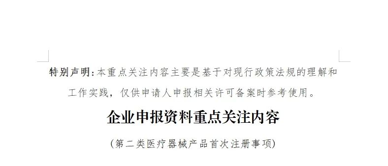 本期文章我們對(duì)安徽省藥監(jiān)局列出的企業(yè)提交申報(bào)資料時(shí)應(yīng)當(dāng)重點(diǎn)關(guān)注的內(nèi)容進(jìn)行轉(zhuǎn)載,該局對(duì)注冊(cè)(含首次、延續(xù)及變更)申報(bào)資料的每一部分都列出了重點(diǎn)關(guān)注內(nèi)容,其中第二類醫(yī)療器械首次注冊(cè)中的“監(jiān)管信息”重點(diǎn)關(guān)注內(nèi)容具體如下: