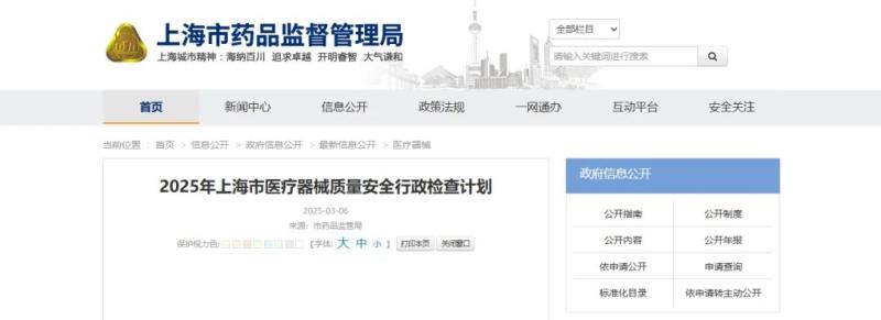 3月6日,上海市藥監(jiān)局發(fā)布《2025年上海市醫(yī)療器械質(zhì)量安全行政檢查計劃》,該計劃提到,檢查對象為上海市轄區(qū)內(nèi)醫(yī)療器械注冊人、備案人、受托生產(chǎn)企業(yè),醫(yī)療器械經(jīng)營企業(yè)(含網(wǎng)絡(luò)銷售經(jīng)營者),醫(yī)療器械使用單位,醫(yī)療器械電子商務(wù)平臺等。必要時依法可開展延伸檢查。檢查方式及項目等具體如下: