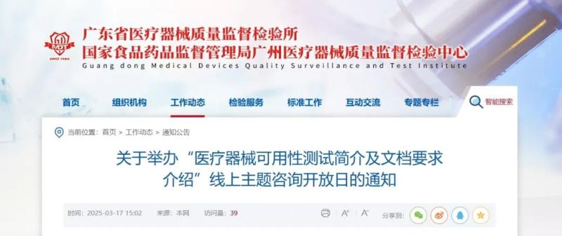 3月17日,廣東省醫(yī)療器械質(zhì)量監(jiān)督檢驗(yàn)所官網(wǎng)發(fā)布通知稱,定于3月21日(周五)舉辦“醫(yī)療器械可用性測(cè)試簡(jiǎn)介及文檔要求介紹”線上主題咨詢開(kāi)放日活動(dòng),具體時(shí)間及參會(huì)方式如下: