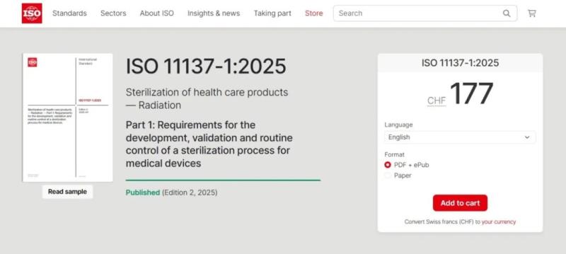 近日,國際標(biāo)準(zhǔn)化組織發(fā)布了有關(guān)醫(yī)療保健產(chǎn)品輻射滅菌的新版標(biāo)準(zhǔn)ISO 11137-1:2025 Sterilization of health care products — Radiation — Part 1: Requirements for the development, validation and routine control of a sterilization process for medical devices,通過查看ISO官網(wǎng)發(fā)布的標(biāo)準(zhǔn)樣本,我們給大家整理了本次標(biāo)準(zhǔn)主要更新內(nèi)容: