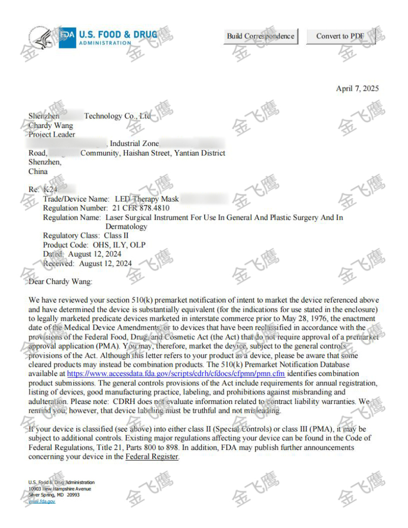↓畢竟只有那些有挑戰(zhàn)性的案例 才能更好地展現(xiàn)我們的專業(yè)實(shí)力 那么既然LED面罩的510(k)案例 為什么這次還要特別拿出來說呢? 接下來請聽我細(xì)細(xì)道來 它有四種模式 分別對應(yīng)不同的預(yù)期用途 ? 藍(lán)光模式(460nm)-治療痤瘡 更值得一提的是 2?? 面罩+頸罩組合款 由于紅光及混合光均有祛皺作用 那么對于該產(chǎn)品的第二個(gè)型號來說 面部+頸部祛皺 都結(jié)合到一起了 而在這個(gè)成功案例的背后 凝聚著金飛鷹團(tuán)隊(duì) ? 對FDA法規(guī)的深刻理解 ? 對光療設(shè)備的專業(yè)認(rèn)知 所以 假如您也正在研發(fā)或有意向研發(fā)此類產(chǎn)品 記得聯(lián)系我們~ 當(dāng)然,假如您有其他產(chǎn)品的美國FDA認(rèn)證需求 也歡迎隨時(shí)聯(lián)系我們咨詢 ?400-888-7587 國內(nèi)外4000+服務(wù)案例支撐 定能幫您加速產(chǎn)品上市進(jìn)程~