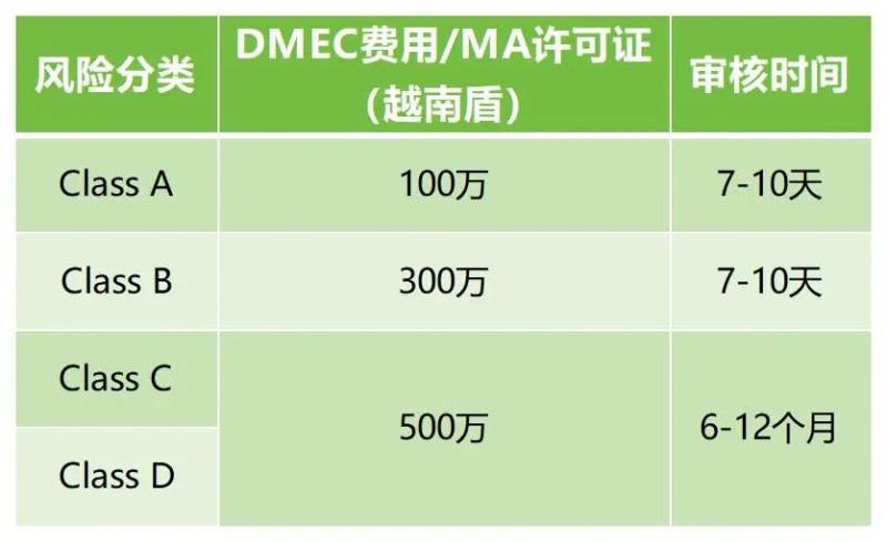 C類和D類器械在越南進(jìn)口和銷售之前需要獲得市場授權(quán)(MA)許可證;當(dāng)?shù)厥跈?quán)代表需要提交上市注冊文檔Marketing Authorization Registration到衛(wèi)生部DMEC,審核和批準(zhǔn)后獲得永久有效的《流通注冊證》(產(chǎn)品許可證)。大致費(fèi)用及周期如下: