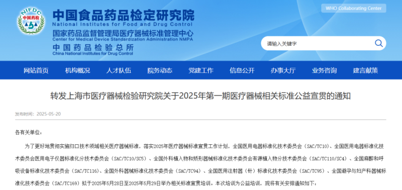 5月20日,中檢院轉(zhuǎn)發(fā)了上海市醫(yī)療器械檢驗研究院關(guān)于2025年第一期醫(yī)療器械相關(guān)標準公益宣貫,其中提到,全國醫(yī)用電器標準化技術(shù)委員會(SAC/TC10)、全國醫(yī)用電器標準化技術(shù)委員會醫(yī)用電子儀器標準化分技術(shù)委員會(SAC/TC10/SC5)、全國外科植入物和矯形器械標準化技術(shù)委員會有源植入物分技術(shù)委員會(SAC/TC110/SC4)、全國麻醉和呼吸設(shè)備標準化技術(shù)委員會(SAC/TC116)、全國外科器械標準化技術(shù)委員會(SAC/TC94)、全國醫(yī)用注射器(針)標準化技術(shù)委員會(SAC/TC95)、全國避孕與婦產(chǎn)科器械標準化技術(shù)委員會(SAC/TC169)擬于2025年5月28日至2025年5月29日舉辦相關(guān)標準宣貫培訓(xùn)。有關(guān)事項具體如下:
