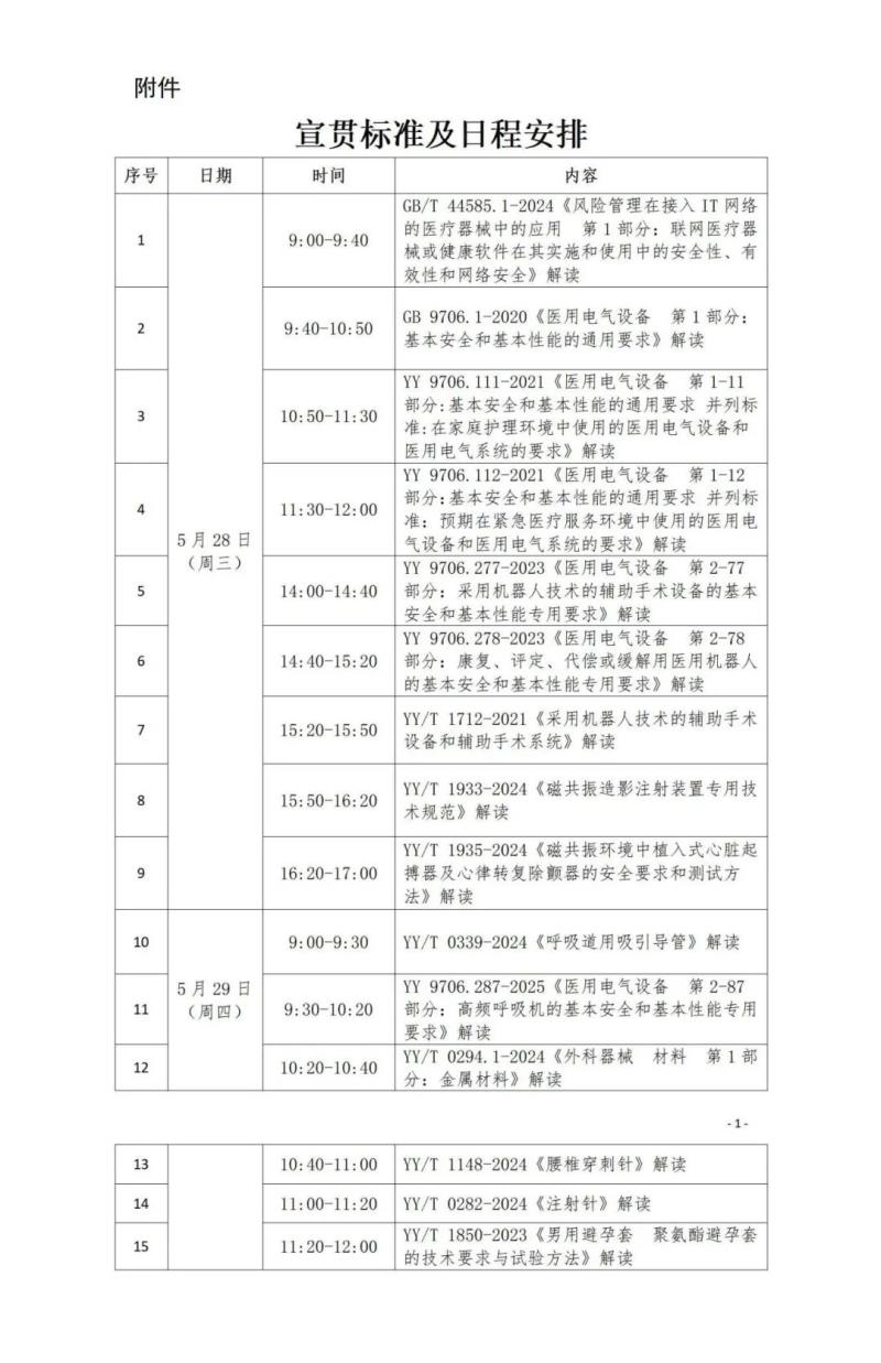 對GB/T 44585.1-2024《風(fēng)險管理在接入IT網(wǎng)絡(luò)的醫(yī)療器械中的應(yīng)用 第1部分:聯(lián)網(wǎng)醫(yī)療器械或健康軟件在其實施和使用中的安全性、有效性和網(wǎng)絡(luò)安全》、GB 9706.1-2020《醫(yī)用電氣設(shè)備 第1部分:基本安全和基本性能的通用要求》、YY 9706.111-2021《醫(yī)用電氣設(shè)備 第1-11部分:基本安全和基本性能的通用要求 并列標準:在家庭護理環(huán)境中使用的醫(yī)用電氣設(shè)備和醫(yī)用電氣系統(tǒng)的要求》等15項行業(yè)標準進行宣貫培訓(xùn),具體清單及安排如下: