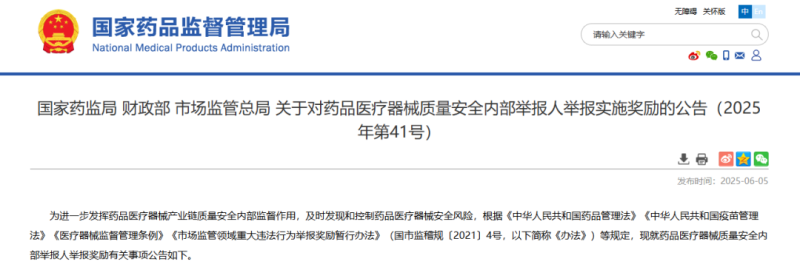 一、藥品醫(yī)療器械研制、生產(chǎn)、經(jīng)營(yíng)企業(yè)和使用單位,藥品醫(yī)療器械網(wǎng)絡(luò)交易第三方平臺(tái)提供者以及其他組織(以下統(tǒng)稱企業(yè)及相關(guān)單位)的內(nèi)部員工、相關(guān)知情人,向藥品監(jiān)督管理部門實(shí)名舉報(bào)藥品醫(yī)療器械質(zhì)量安全重大違法行為,藥品監(jiān)督管理部門實(shí)施獎(jiǎng)勵(lì)的,適用本公告。