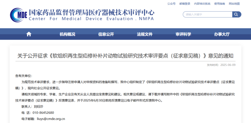 6月9日,國家藥監(jiān)局器審中心發(fā)布《軟組織再生型疝修補補片動物試驗研究技術(shù)審評要點(征求意見稿)》(以下簡稱《要點》),并向社會公開征求意見。