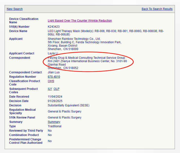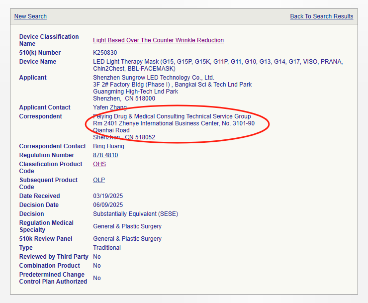 近年來我們輔導(dǎo)的紅藍光面罩510(k)案例不計其數(shù)(詳情可查看“成功案例”合集),本文我們只挑選出2025年獲批的案例進行展示:
