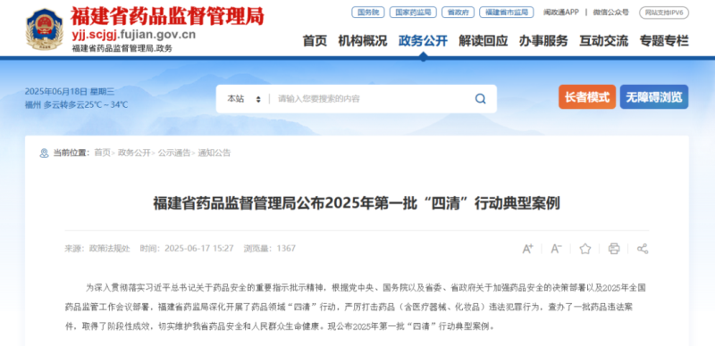 6月17日,福建省藥監(jiān)局公布《2025年第一批“四清”行動典型案例》,涉及“兩品一械”領域共計10個違法案例,其中與醫(yī)療器械相關的案例如下: