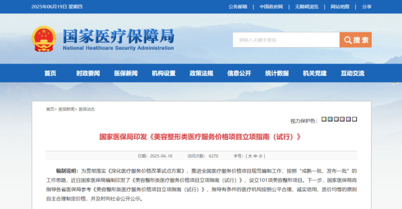 6月18日,國(guó)家醫(yī)保局印發(fā)了《美容整形類醫(yī)療服務(wù)價(jià)格項(xiàng)目立項(xiàng)指南(試行)》(以下簡(jiǎn)稱《指南》),共規(guī)定了101項(xiàng)美容整形項(xiàng)目的服務(wù)價(jià)格相關(guān)內(nèi)容,包括價(jià)格構(gòu)成、計(jì)價(jià)單位等,如光/激光美容治療費(fèi)的計(jì)價(jià)單位為光斑,射頻、超聲、微針等美容治療費(fèi)的計(jì)價(jià)單位均為平方厘米……