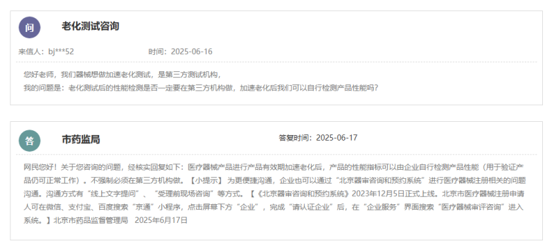 根據(jù)北京市藥監(jiān)局的答復(fù),醫(yī)療器械產(chǎn)品進(jìn)行產(chǎn)品有效期加速老化后,產(chǎn)品的性能指標(biāo)可以由企業(yè)自行檢測(cè)產(chǎn)品性能(用于驗(yàn)證產(chǎn)品仍可正常工作)。不強(qiáng)制必須在第三方機(jī)構(gòu)做。