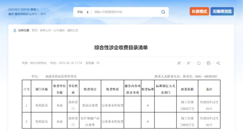 為促進醫(yī)療器械產(chǎn)業(yè)創(chuàng)新發(fā)展,近年來全國多地出臺注冊費減免政策,切實降低企業(yè)成本。6月30日,福建藥監(jiān)局公開《綜合性涉企收費目錄清單》,其中提到,根據(jù)《關于進一步落實福建省加快生物醫(yī)藥產(chǎn)業(yè)高質(zhì)量發(fā)展的實施方案的若干措施》(閩工信規(guī)[2023]7號 ),醫(yī)療器械產(chǎn)品注冊費為0,有效期至2025年12月31日。
