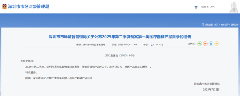 另據(jù)該局公告,2025年第一季度,在深圳市市場(chǎng)監(jiān)督管理局備案的第一類醫(yī)療器械共有321個(gè),也就是說,2025年前兩個(gè)季度共完成近800個(gè)產(chǎn)品備案,也側(cè)面反映了市場(chǎng)需求之多。如您的企業(yè)有一類醫(yī)療器械產(chǎn)品備案需求,歡迎隨時(shí)聯(lián)系我們咨詢!