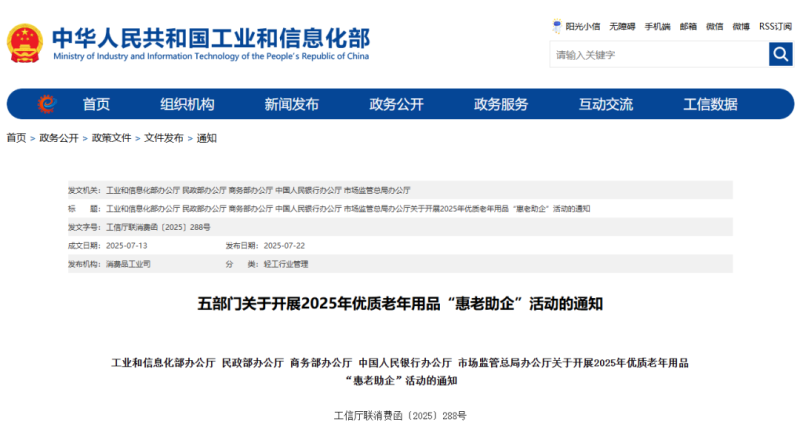 近日,國(guó)家工信部、民政部等五部門發(fā)布《關(guān)于開展2025年優(yōu)質(zhì)老年用品‘惠老助企’活動(dòng)的通知》(以下簡(jiǎn)稱《通知》),以全面落實(shí)國(guó)務(wù)院辦公廳《關(guān)于發(fā)展銀發(fā)經(jīng)濟(jì)增進(jìn)老年人福祉的意見》,持續(xù)推動(dòng)老年用品增品種、提品質(zhì)、創(chuàng)品牌,大力提升老年用品供需適配能力。《通知》具體內(nèi)容如下: