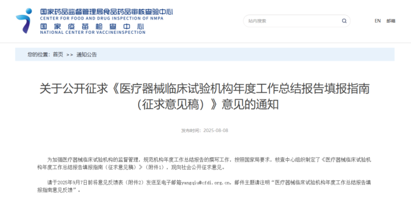 為統(tǒng)一年度報告填報格式,規(guī)范填報內(nèi)容,保證填報質(zhì)量,為臨床試驗監(jiān)督管理提供客觀、準確、高質(zhì)量數(shù)據(jù),近日,國家藥監(jiān)局核查中心發(fā)布《醫(yī)療器械臨床試驗機構(gòu)年度工作總結(jié)報告填報指南(征求意見稿)》(以下簡稱《指南》),并向社會公開征求意見。
