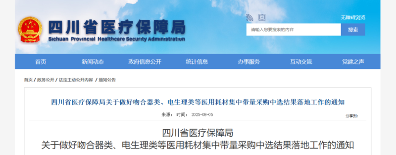 近日,四川省醫(yī)療保障局發(fā)布《關于做好吻合器類、電生理類等醫(yī)用耗材集中帶量采購中選結果落地工作的通知》,以下為通知具體內(nèi)容: