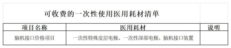 ↑ 可收費(fèi)的一次性使用醫(yī)用耗材清單(如一次性特殊皮層電極、一次性深部電極等)