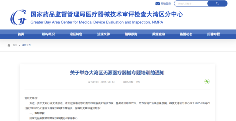 近日,國家藥監(jiān)局醫(yī)療器械技術審評檢查大灣區(qū)分中心發(fā)布通知,定于8月29日(周五)舉辦“大灣區(qū)無源醫(yī)療器械專題培訓”線上主題咨詢開放日活動,具體培訓內容及報名方式如下: