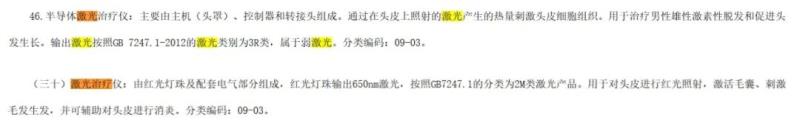 激光生發(fā)儀,主要通過(guò)在頭皮上照射的激光產(chǎn)生的熱量刺激頭皮細(xì)胞組織,用于刺激毛發(fā)生長(zhǎng),一般用的是2M類(lèi)或3R類(lèi)激光。國(guó)家藥監(jiān)局醫(yī)療器械標(biāo)準(zhǔn)管理中心在《2018年醫(yī)療器械產(chǎn)品分類(lèi)界定結(jié)果匯總》及《2023年第三次醫(yī)療器械產(chǎn)品分類(lèi)界定結(jié)果匯總》中,分別對(duì)此類(lèi)產(chǎn)品的預(yù)期用途及分類(lèi)進(jìn)行明確:作為第二類(lèi)醫(yī)療器械管理,分類(lèi)編碼09-03。產(chǎn)品的臨床評(píng)價(jià)方式為同品種對(duì)比。