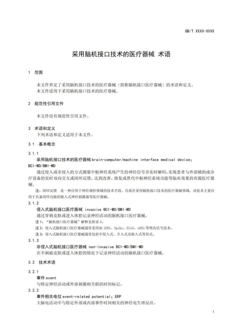 近日,國家藥品監(jiān)督管理局醫(yī)療器械標準管理中心發(fā)布《采用腦機接口技術的醫(yī)療器械 術語》醫(yī)療器械國家標準的征求意見稿,并向社會公開征求意見,同時提到,該標準將于發(fā)布后6個月正式實施。