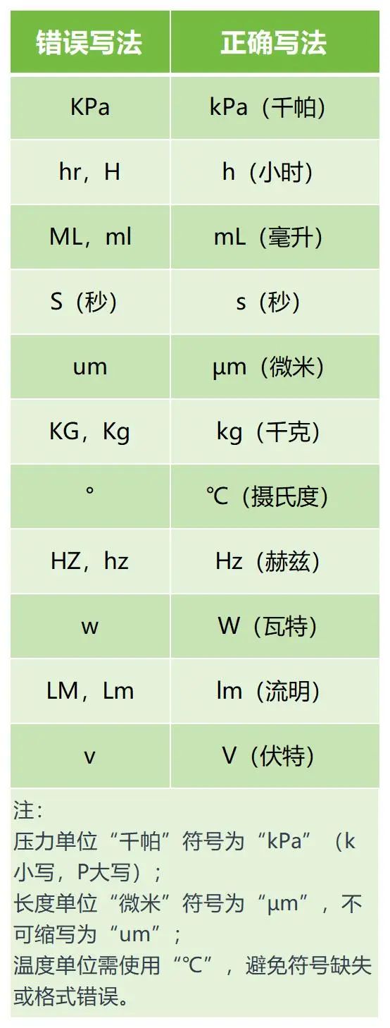 國際標(biāo)準(zhǔn)單位(SI單位)的書寫需嚴(yán)格遵循規(guī)范,避免因符號、大小寫錯誤導(dǎo)致技術(shù)文件失效。部分示例如下: