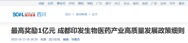 成都拋出“億元”橄欖枝,真金白銀支持生物醫(yī)藥企業(yè)創(chuàng)新